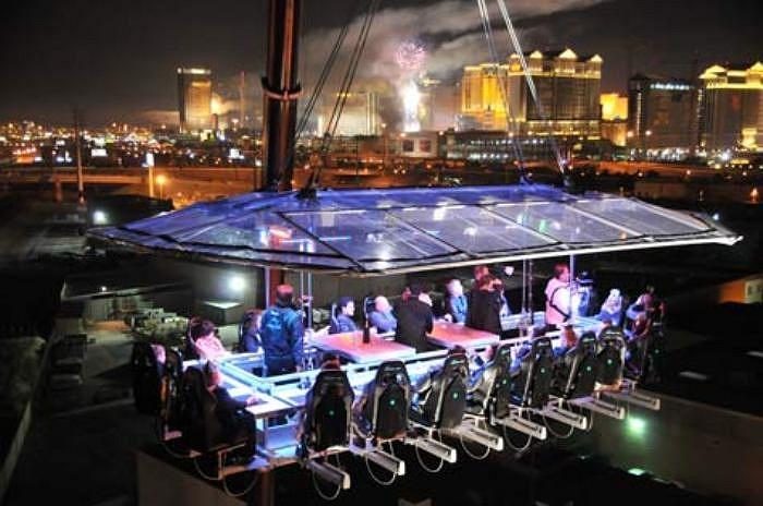 в этой подвешенной на высоте 50 метров корзине, посетители пообедали в